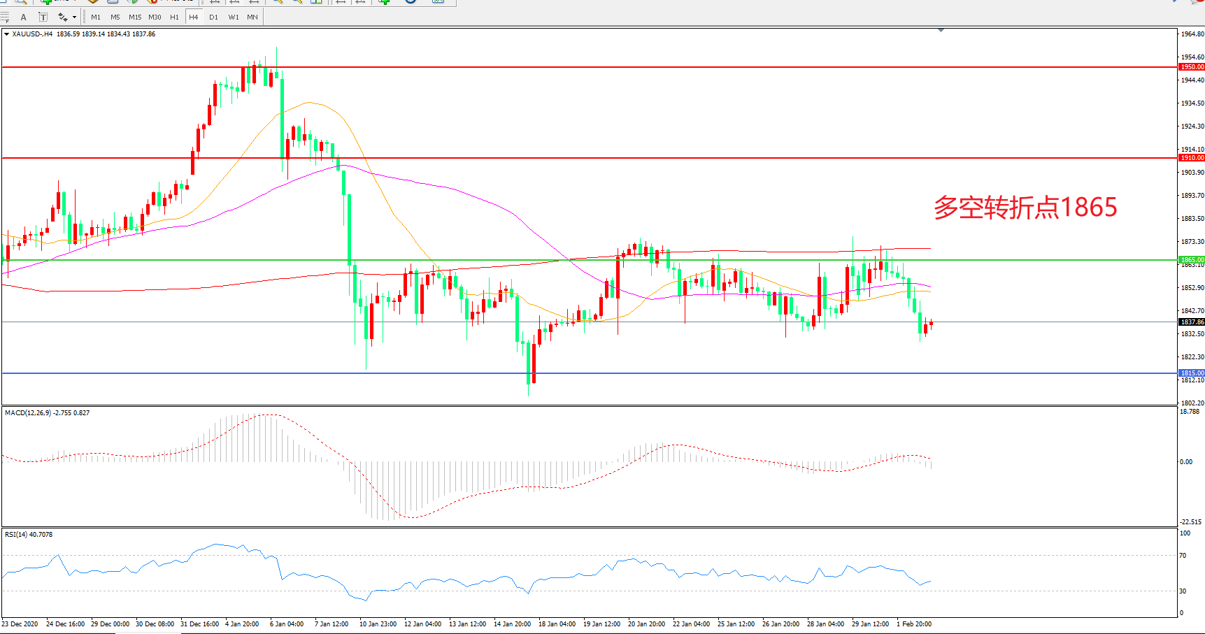 多空转折点:1865.00