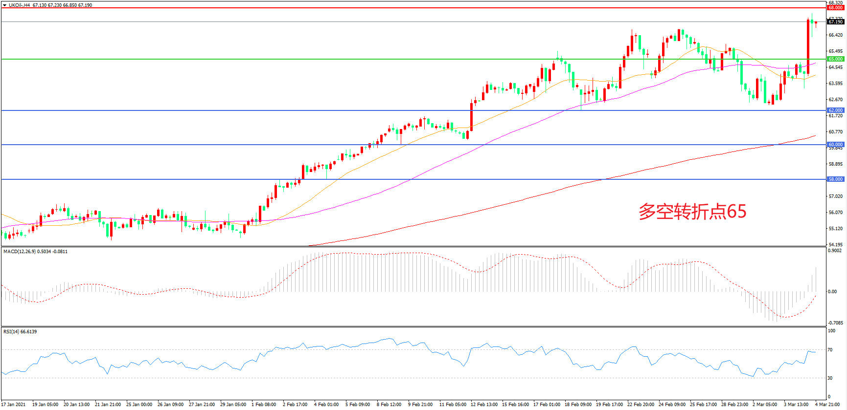交易策略: 在65.00之上看涨,目标68.00 72.00