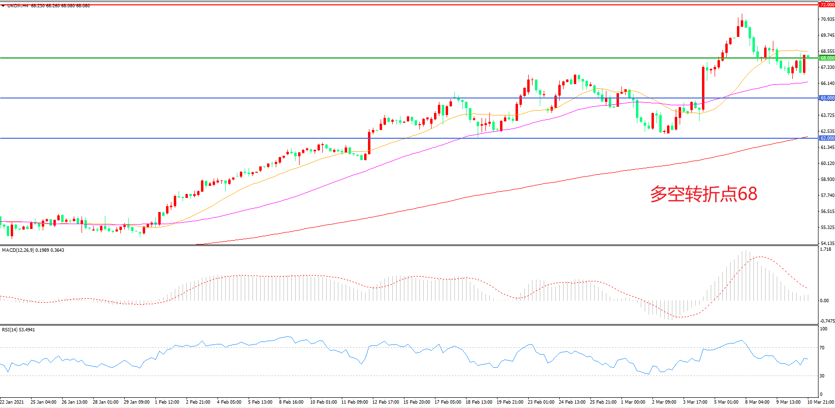 多空转折点:68.00