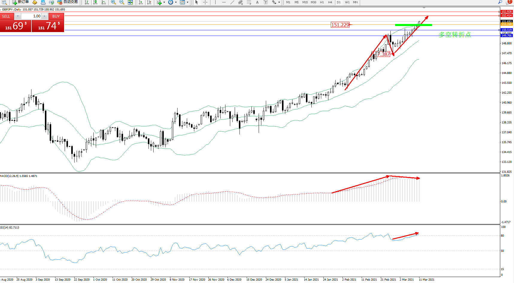 技术点评:低位多头动力延续布林带指标通道中上轨区间持续震荡上扬态势良好,高位延续上轨附近不断向上移动中,且多头动力未见止步迹象,布林带指标向上移动趋势良好,MACD指标处于多头区域高位整理平移中,RSI指标多头动力上扬至超买区80均衡线附近整理中;