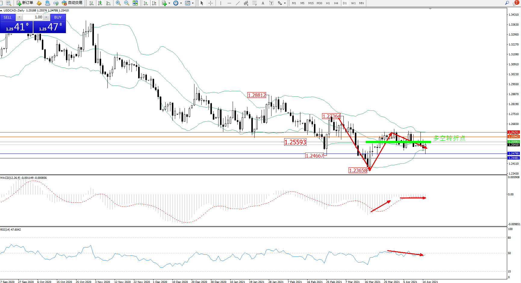 美元加元USDCAD——日K线图显示: