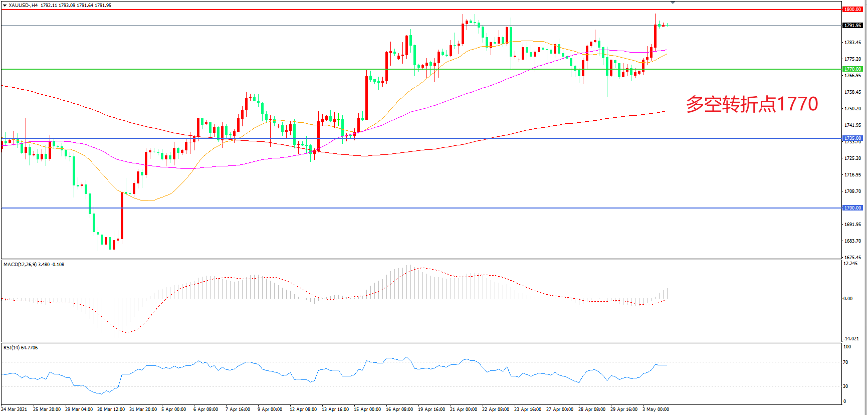 多空转折点:1770.00