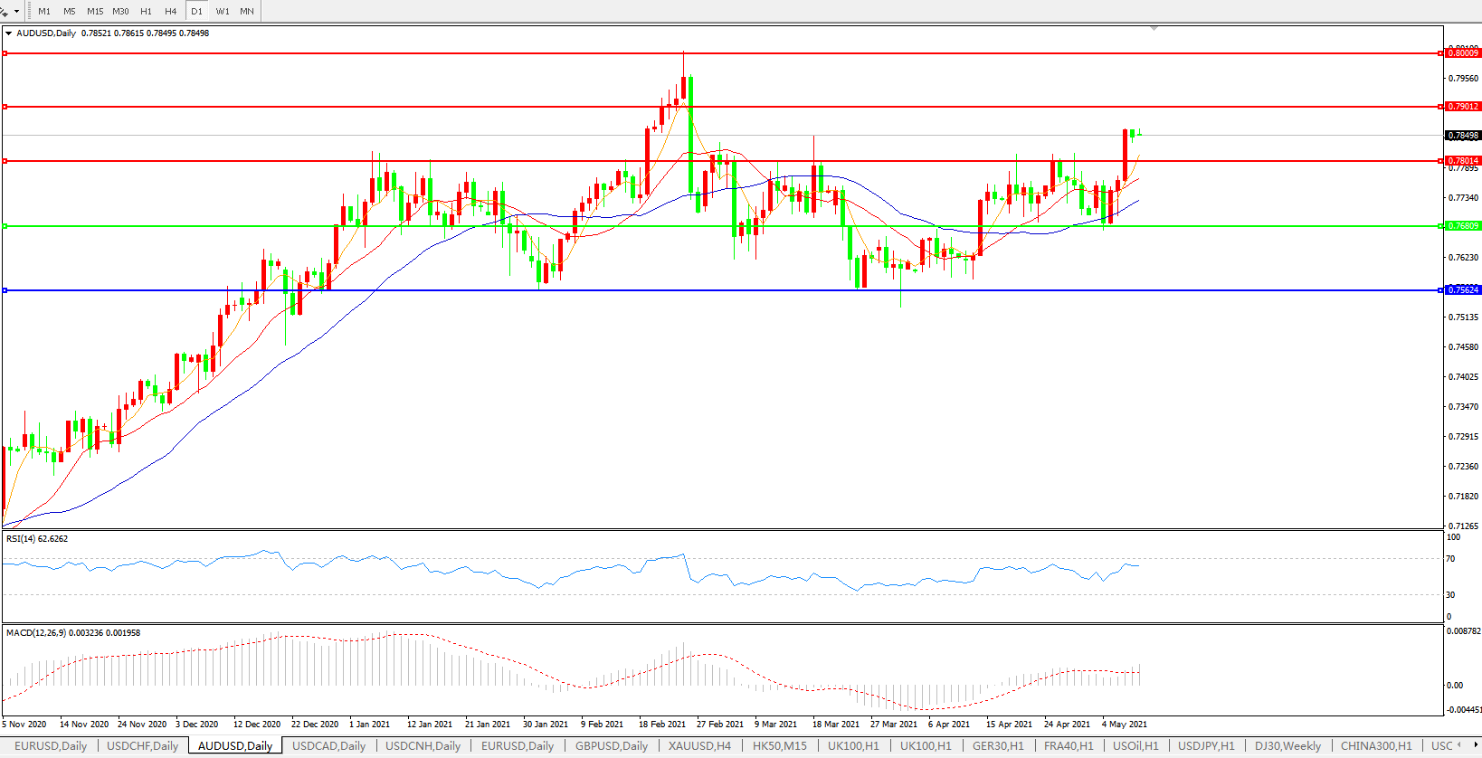 交易策略:0.7680上方看涨,目标0.7800、0.7900