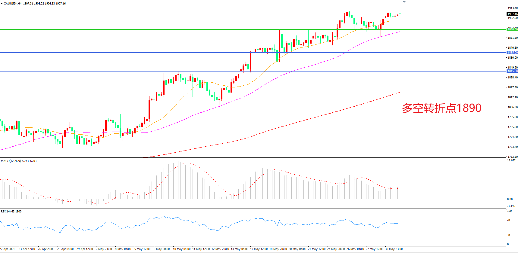 交易策略:在1890.00之上看涨,目标1910.00    1935.00