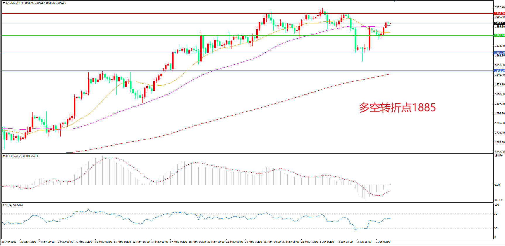 交易策略:在1885.00之上看涨,目标1910.00 1935.00