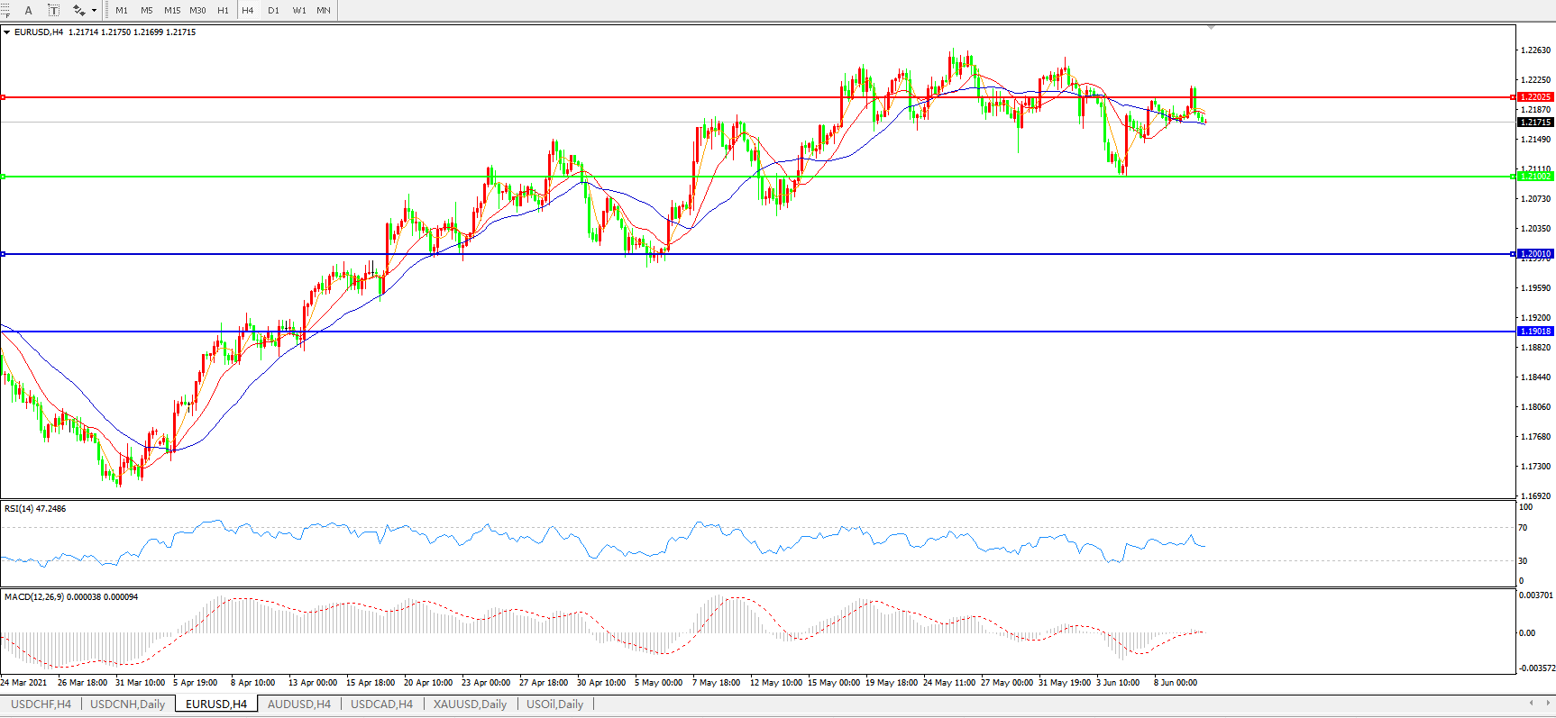 备选策略:1.2100下方看跌,目标1.2000、1.1900