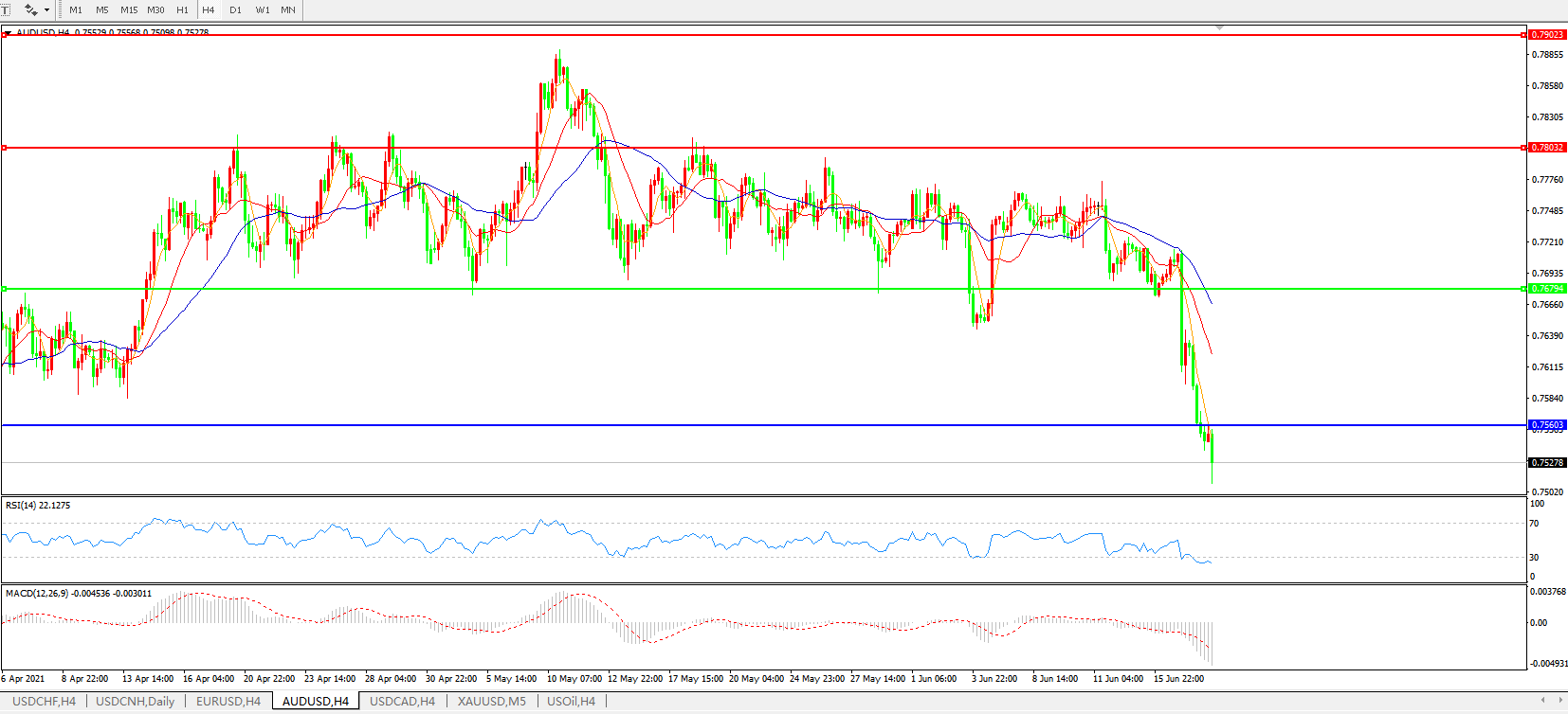 AUDUSD 4小时图: