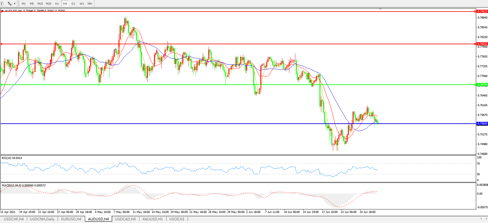 AUDUSD 4小时图: