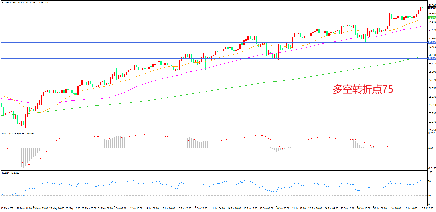 多空转折点:75.00