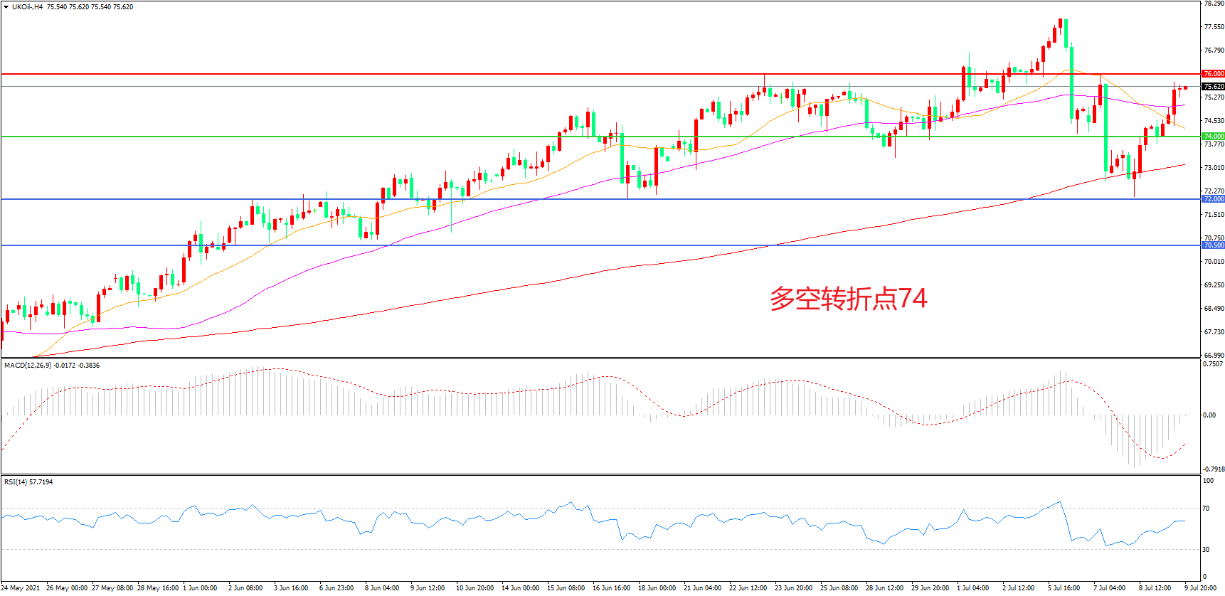 交易策略:在74.00之上看涨,目标76.00    78.50
