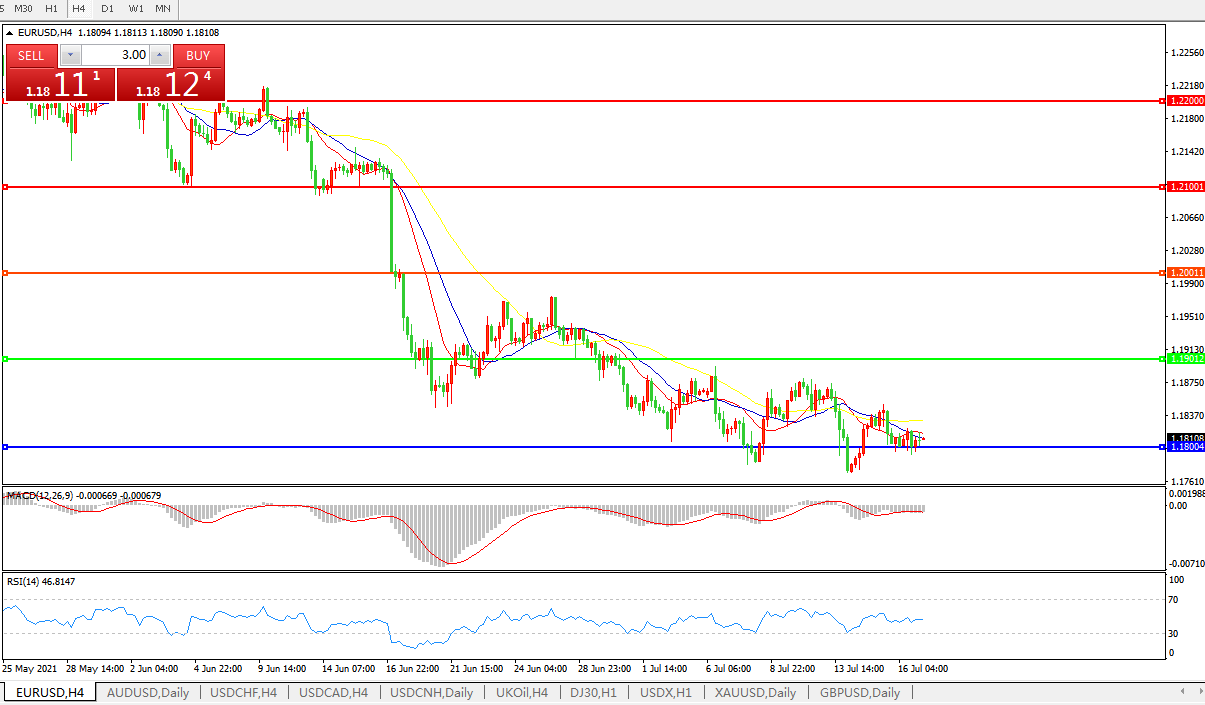 未来一周欧元兑美元EUR/USD面临的主要风险将会是来自与周四公布的欧洲央行利率决议。此前市场认为此次会议不会带来重要的影响,但从目前的情况看,市场可能会因此产生更多的波动,因为欧洲央行可能会推迟新的政策调整时间直至在9月前看到更多明确的数据。我们预计欧洲央行将保持对欧元区经济复苏的谨慎乐观前景,但也会提到Delta变异病毒带来的下行风险