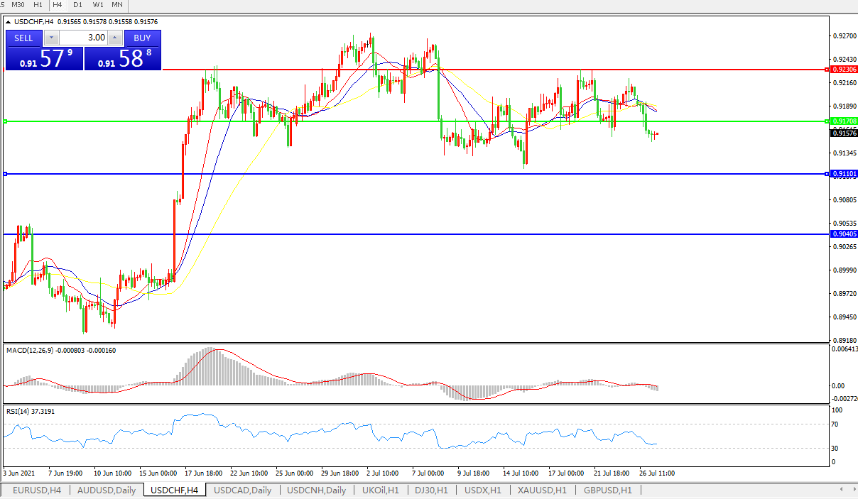 美元兑瑞郎USDCHF 4小时图: