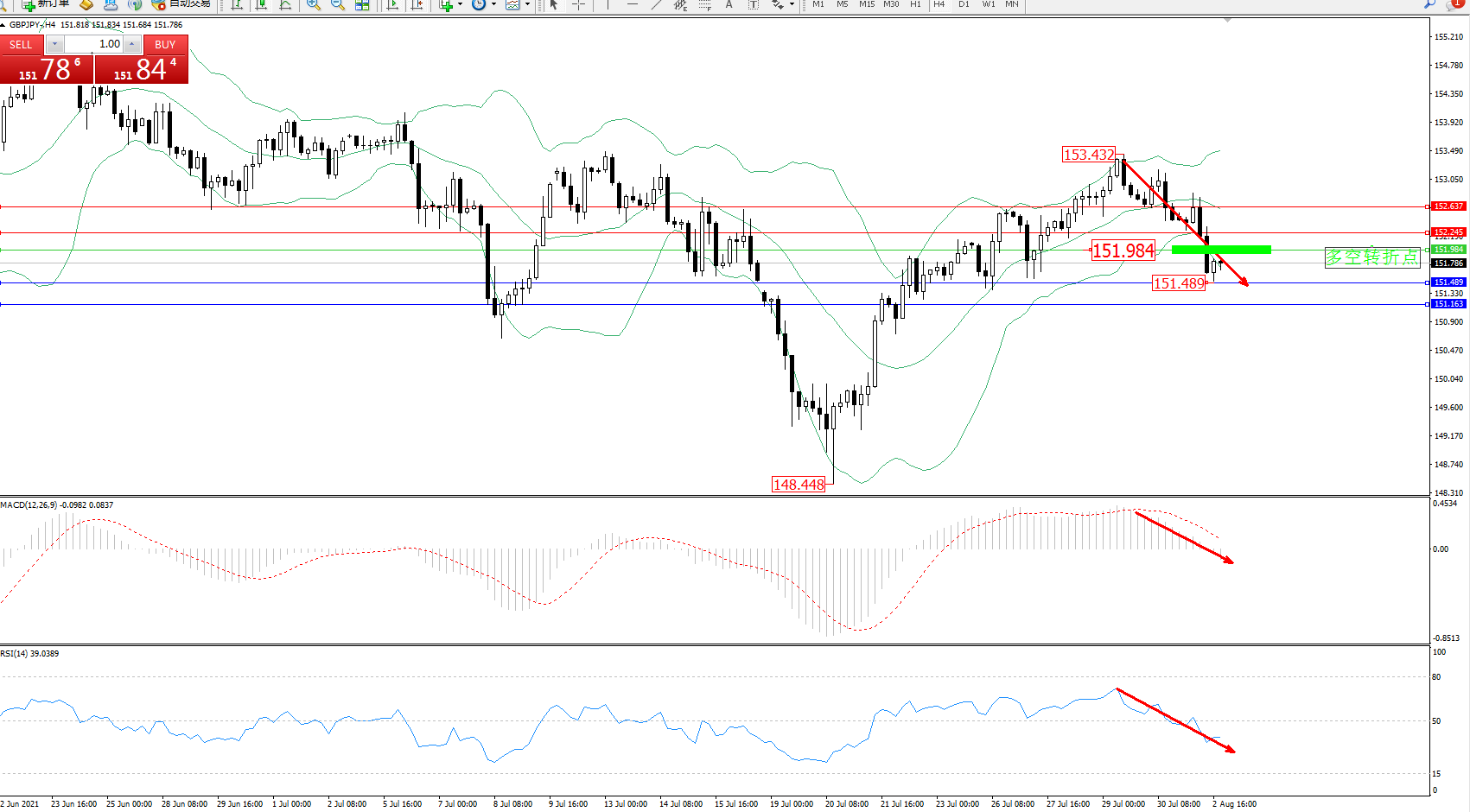 多空转折点:151.984