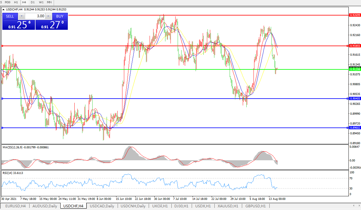 美元兑瑞郎USDCHF 4小时图: