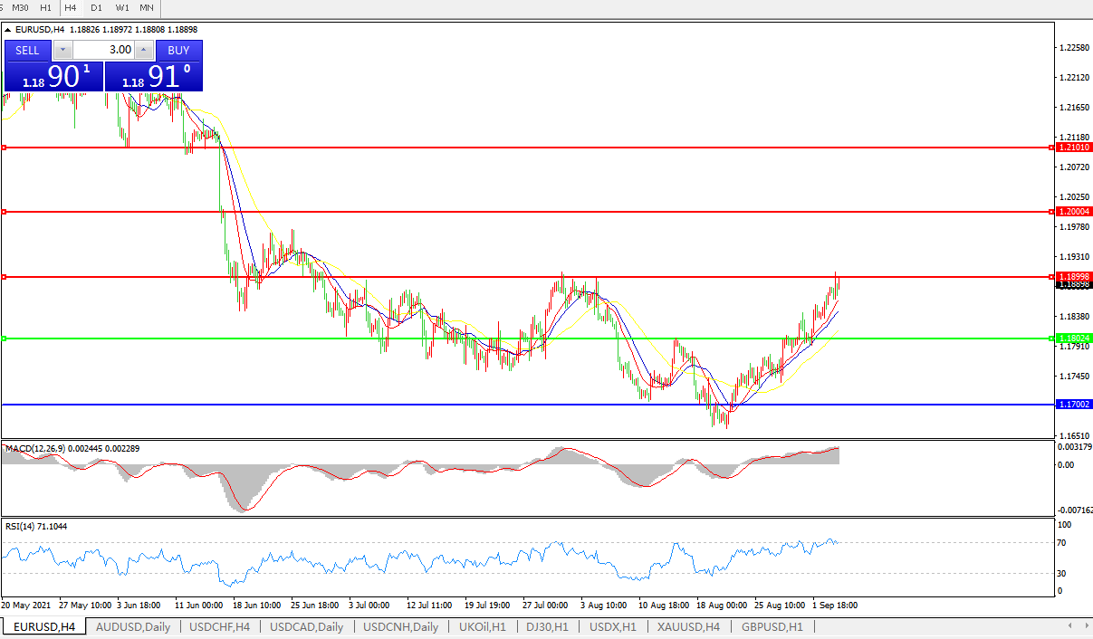 交易策略:1.1800上方看涨,目标1.1900、1.2000