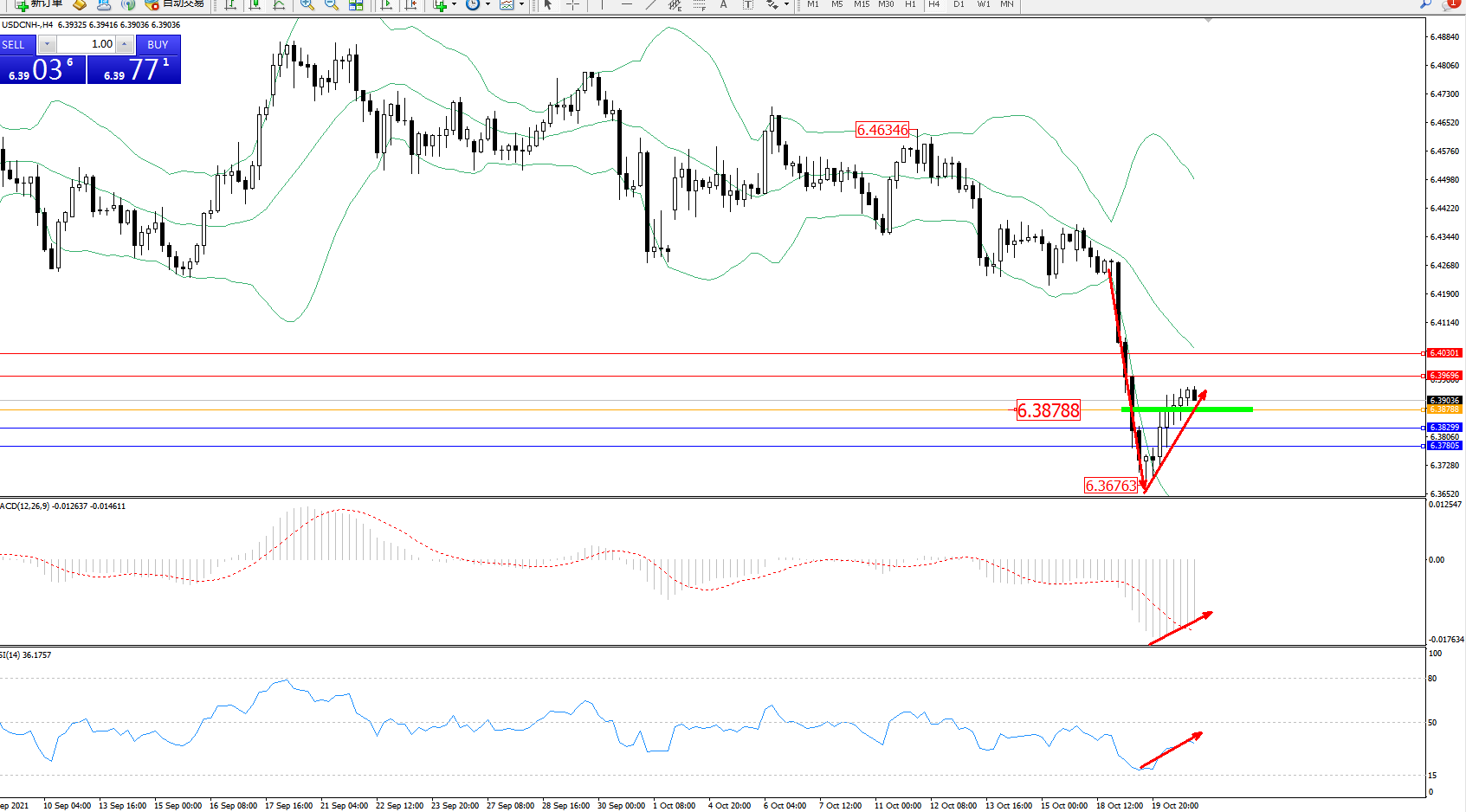 交易策略:6.38788上方看涨,目标6.39696、6.40301