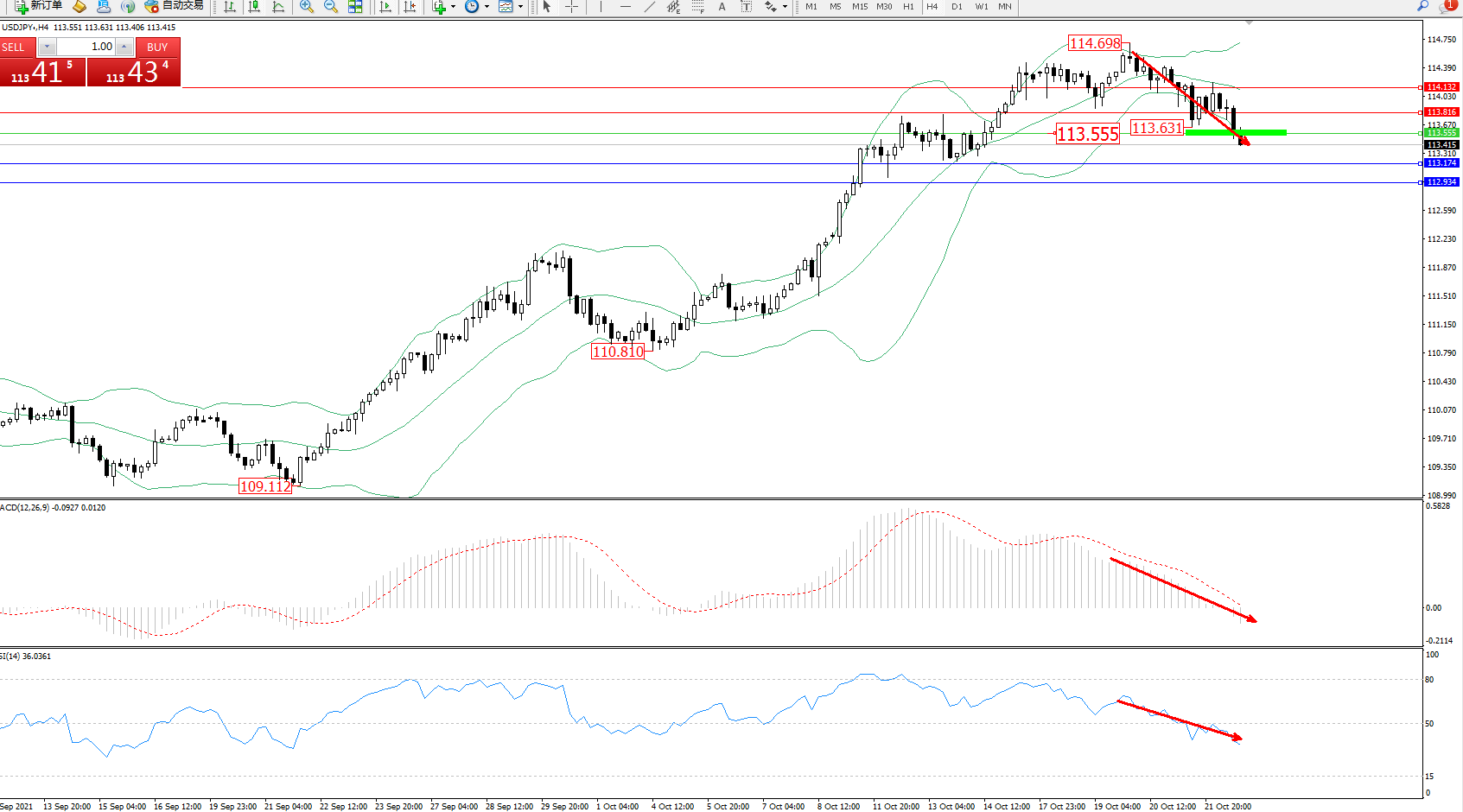 美元兑日圆高位持续下挫至113.415附近震荡,日本9月核心消费者物价指数(CPI)同比上涨,为2020年3月新冠疫情初期以来首次,这表明能源和原材料成本的上升正在逐步推高通胀。燃料成本的上升将在未来几个月加速消费者通胀,尽管与其他发达经济体相比,任何增长都将是温和的,因为低迷的工资增长拖累了消费,使企业不敢大幅提价。由于人为的扭曲和一次性的打击,预计基础通胀率将在明年初达到略低于1.0%的峰值,然后回落。周五公布的政府数据显示,日本9月包括油品,但不包括生鲜食品价格的核心消费者物价较上年同期上涨0.1%,符合市场预估中值。8月为持平。