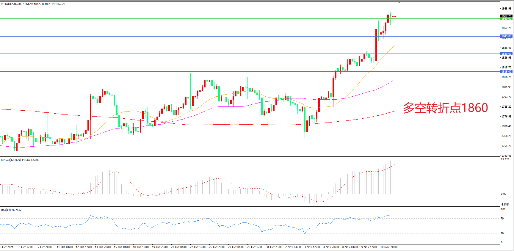 多空转折点:1860.00