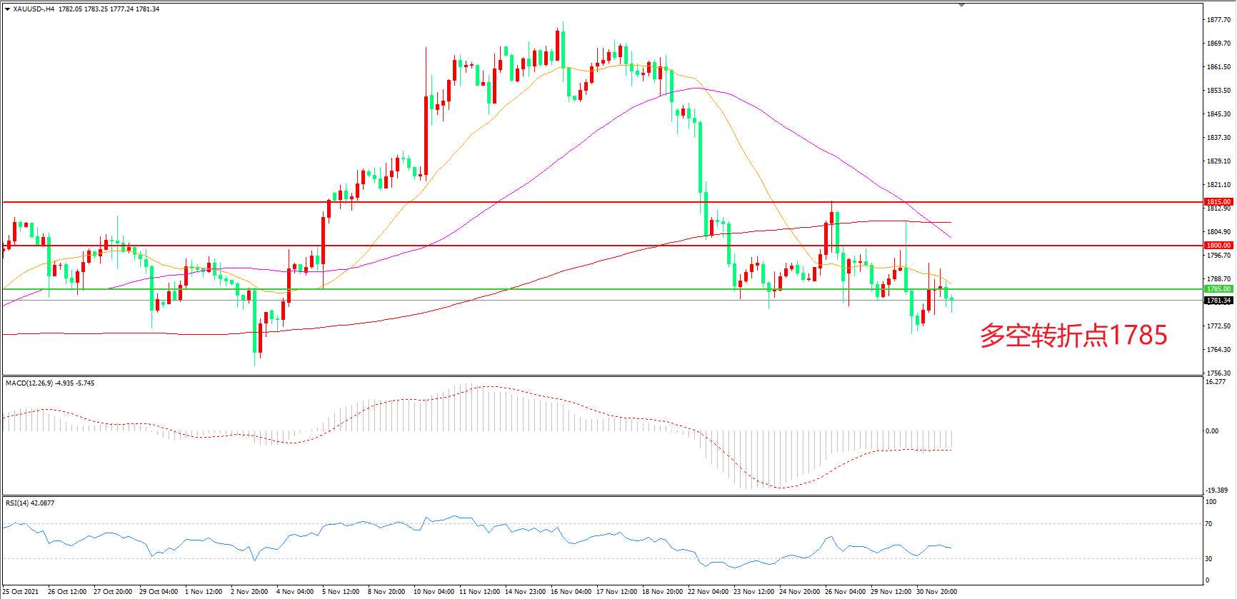多空转折点:1785.00
