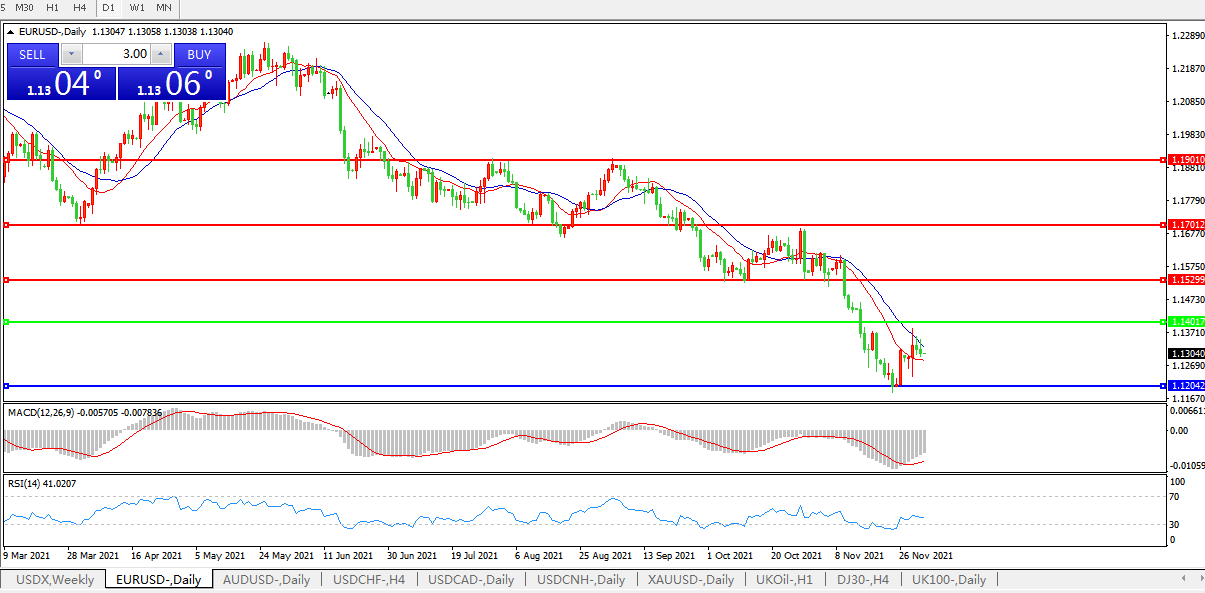 技术面简析:日图均线呈空头排列,汇价快速拉升后窄整理,MACD运行于0轴下但量能开始缩量,RSI小幅走升 ,预计短期汇价大概率将延续反弹修正。