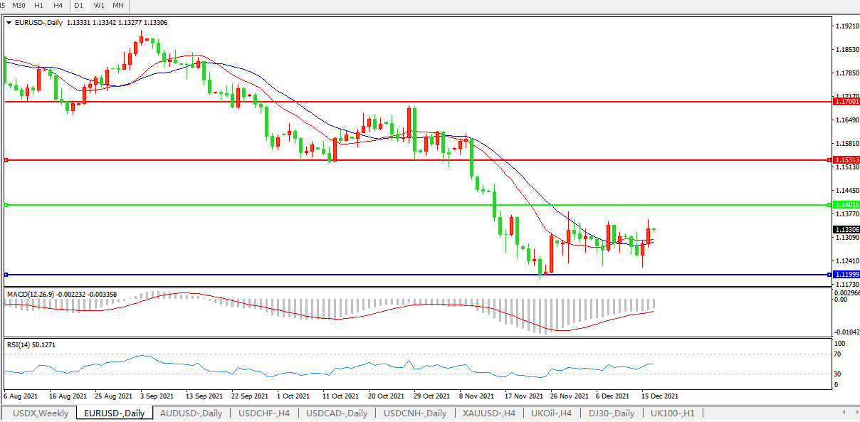 技术面简析:日图均线开始拐头上行,汇价继续小幅上行,MACD运行于0轴下但量能持续缩量,RSI小幅上行,预计短期汇价大概率将进一步上行。