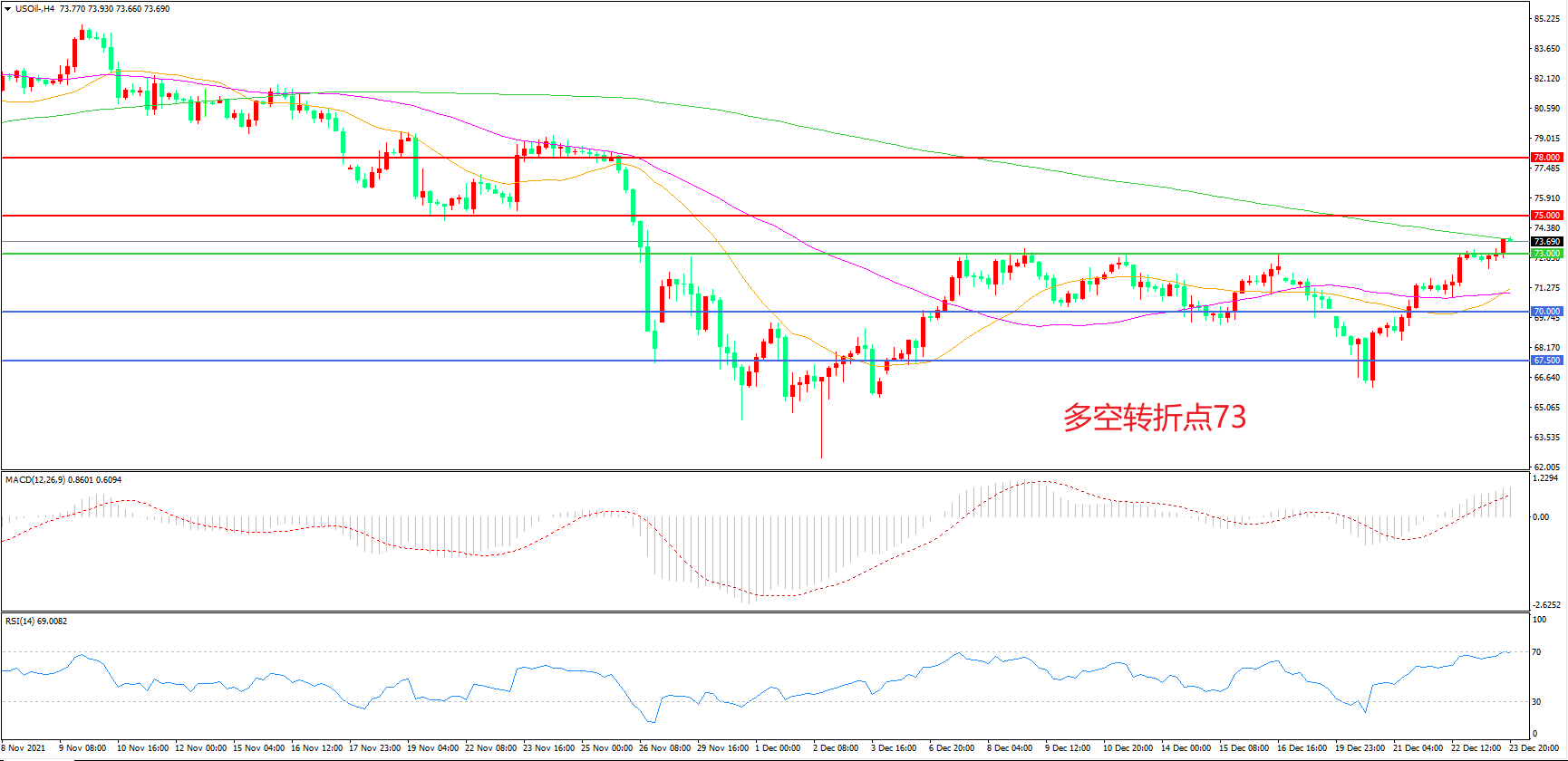 多空转折点:73.00