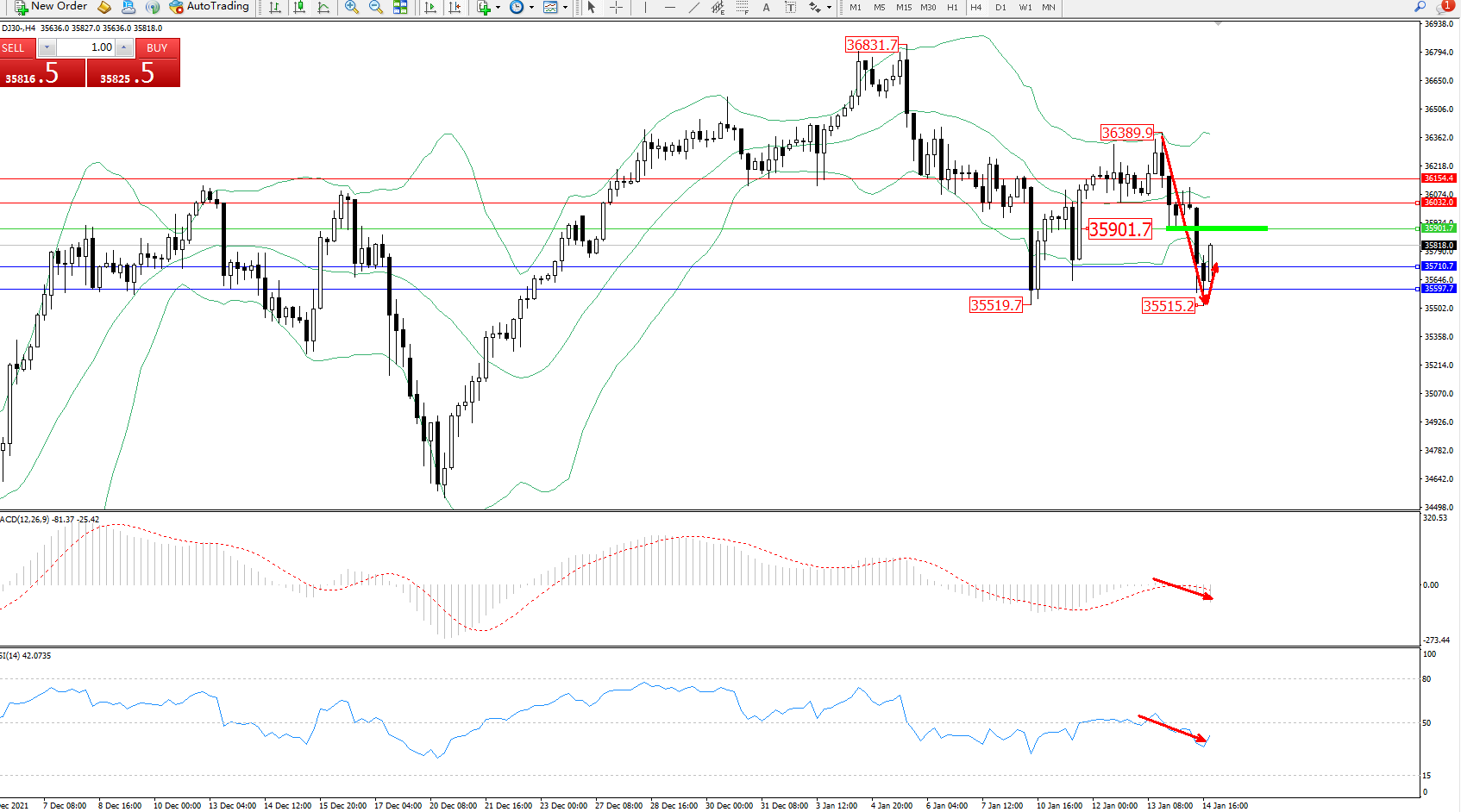 道琼斯指数1月14日(周五)收盘下跌202.40点,跌幅0.56%,报35911.22点;周一美国纽约交易所马丁路德金纪念日,休市一日。美股市场以反弹结束了非常动荡的一周,科技板块领涨。在越来越多重量级人士呼吁加息之际,投资者重新调整了交易策略。摩根大通首席执行官戴蒙称,美联储可能加息多达七次,且政策紧缩过程未必会像部分人可能以为的那样“和风细雨”,但他没有透露加息会在多快时间内发生。纽约联储主席威廉姆斯指出,鉴于当前劳动力市场非常强劲的迹象,美联储正在“接近”做出逐步加息的决定。