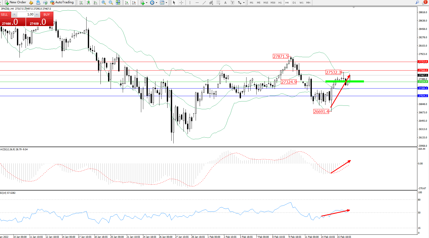技术点评:低位多头动力强势震荡拉升上扬,触及布林带指标上轨27532位置节点后震荡,短期或维持在中上轨区间整理,有继续震荡上移迹象,布林带指标呈收口走势持续平移中,MACD指标低位多头动力维持震荡上移至0轴线附近弱势徘徊中,RSI指标处于50均衡在线侧整理;