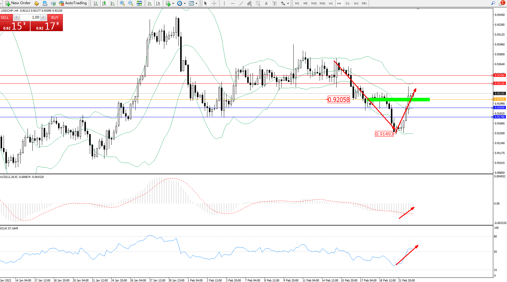 备选策略:0.92058下方看跌,目标0.91920、0.91768