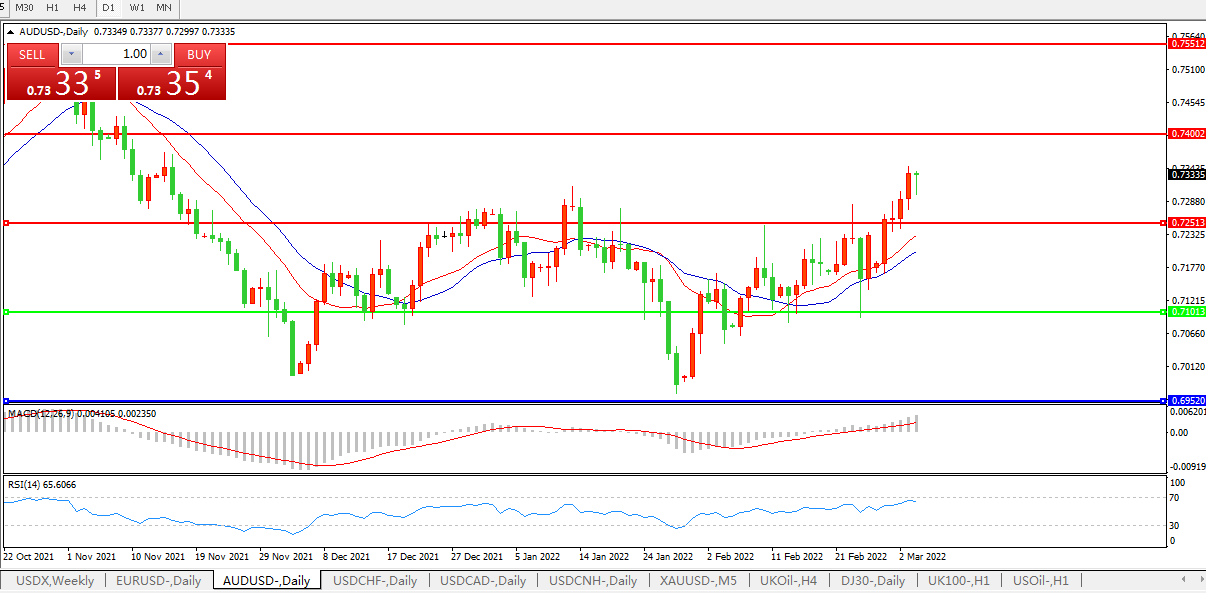 压制位:0.7250 0.7400