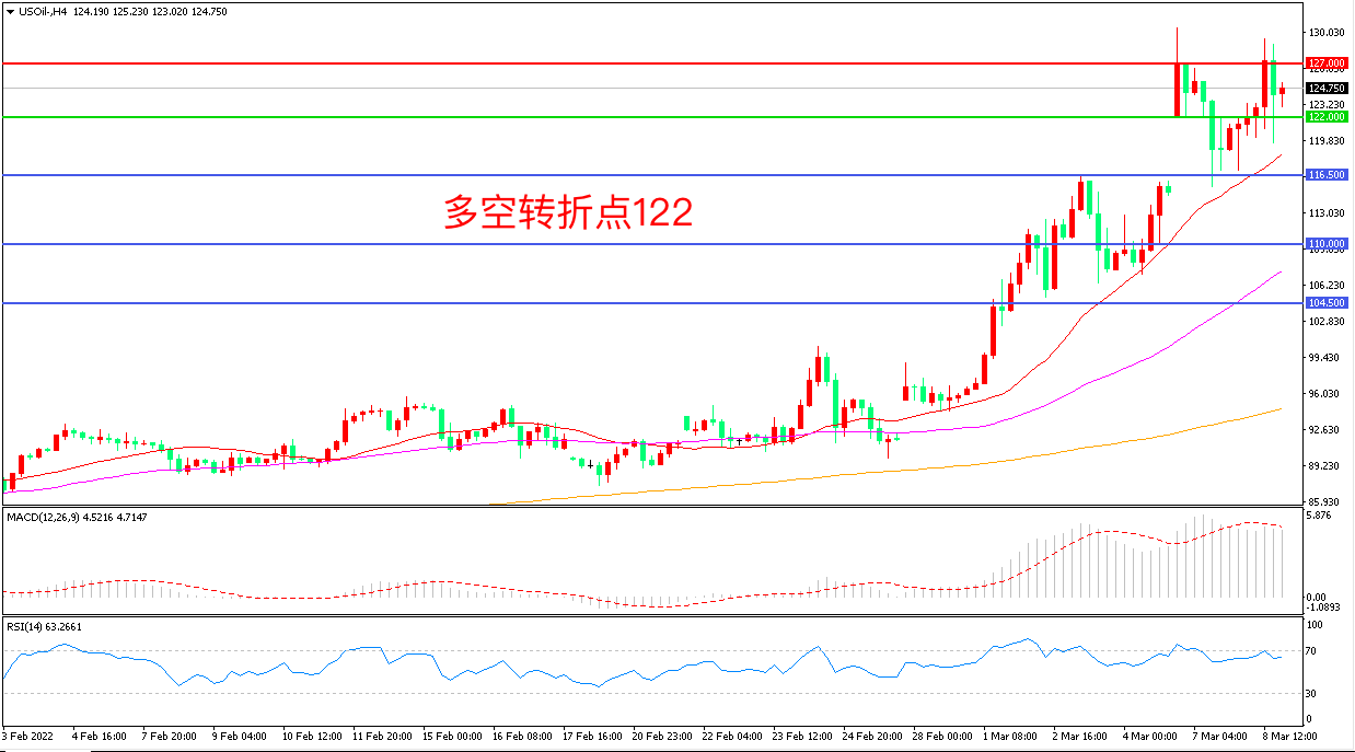 交易策略:在122.00之上看涨,目标127.00 130.00