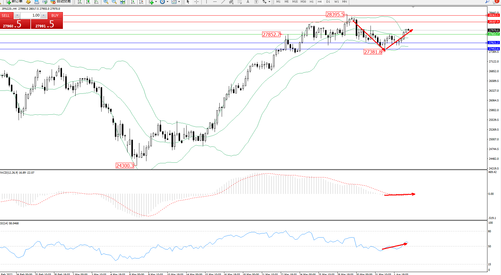 技术点评:高位短期维持在布林带指标通道内弱势整理回撤,抵达27381位置后开始反转上移,触及布林带指标上轨附近节点后开始整理,短期多头动力有继续向上移动态势,布林带指标呈收口走势后开始有缓慢张口迹象,MACD指标处于0轴线附近弱势徘徊中,RSI指标处于50均衡线附近整理后强势拉升至多头区域徘徊;