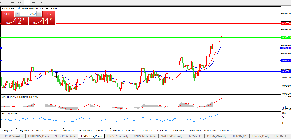 联储二十年来最大加息,美元兑瑞郎冲高回落