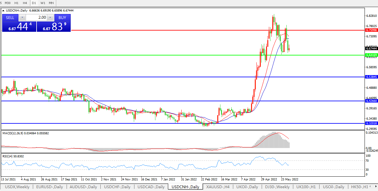 USDCNH   HKDCNH 5月制造业PMI回升,美元人民币延续整理