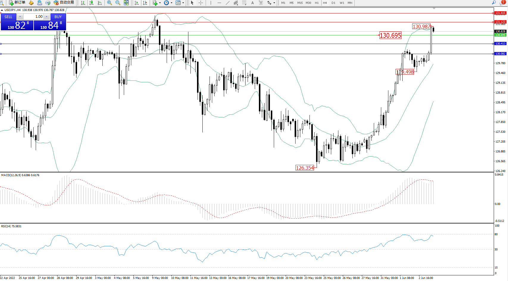 美元兑日圆维持130.828附近震荡,随着美国经济衰退风险上升,日元将表现出色。当美国需求放缓、美国经济陷入衰退或增长放缓时,日元可以作为避风港。在这个宏观和市场环境都高度不确定、且动荡不安的环境中,日元是最安全的货币。