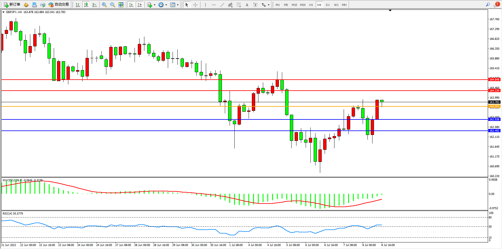交易策略:163.562上方看涨,目标164.330、164.848