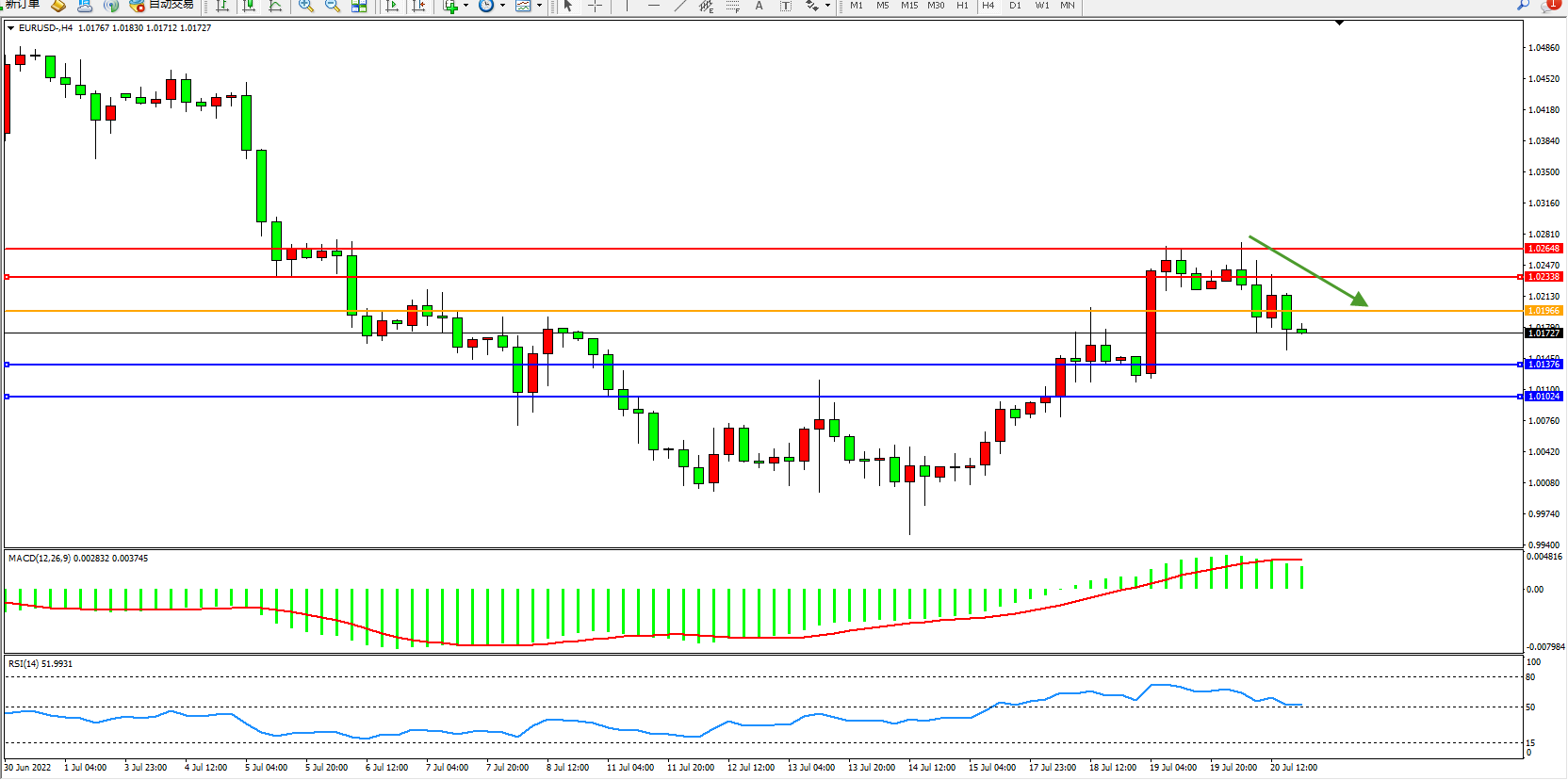 交易策略:1.01966下方看跌,目标1.01376、1.01024