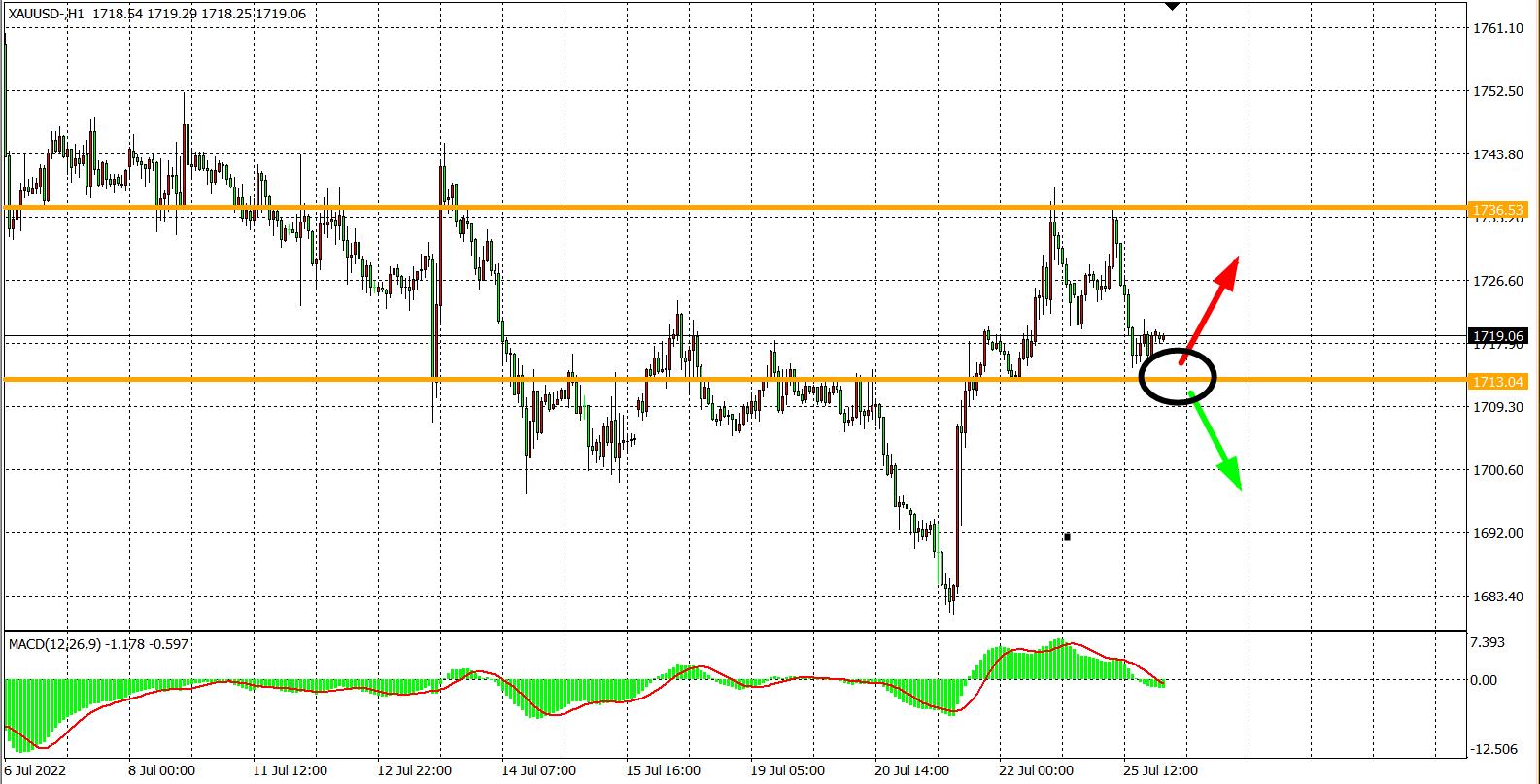 交易策略:在1713.00之下看跌,目标1700.00          1680.00