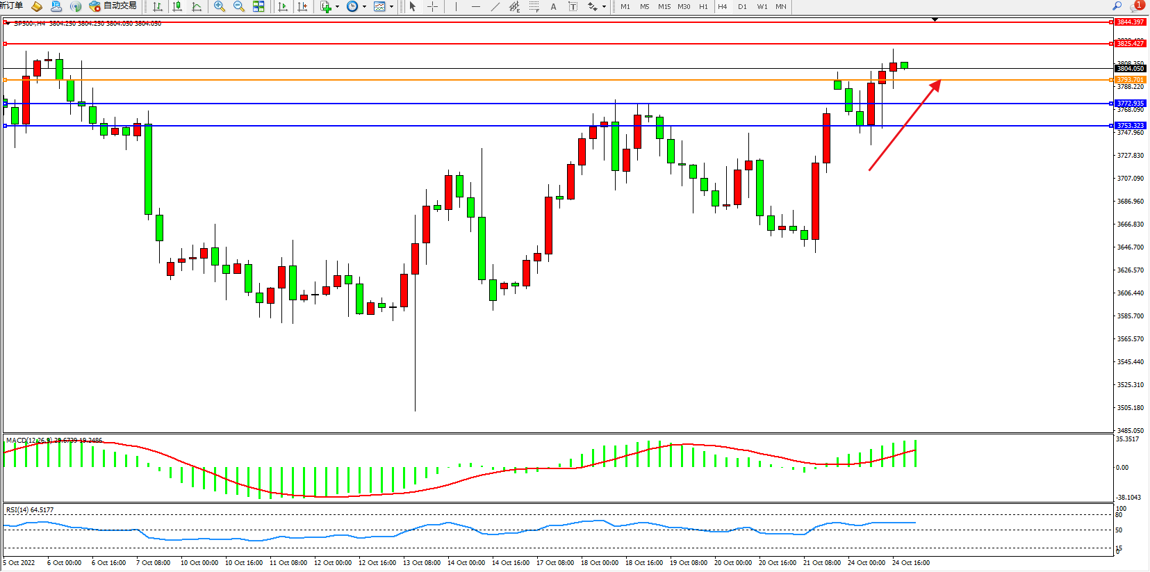 标普SP500——4小时K线图显示: