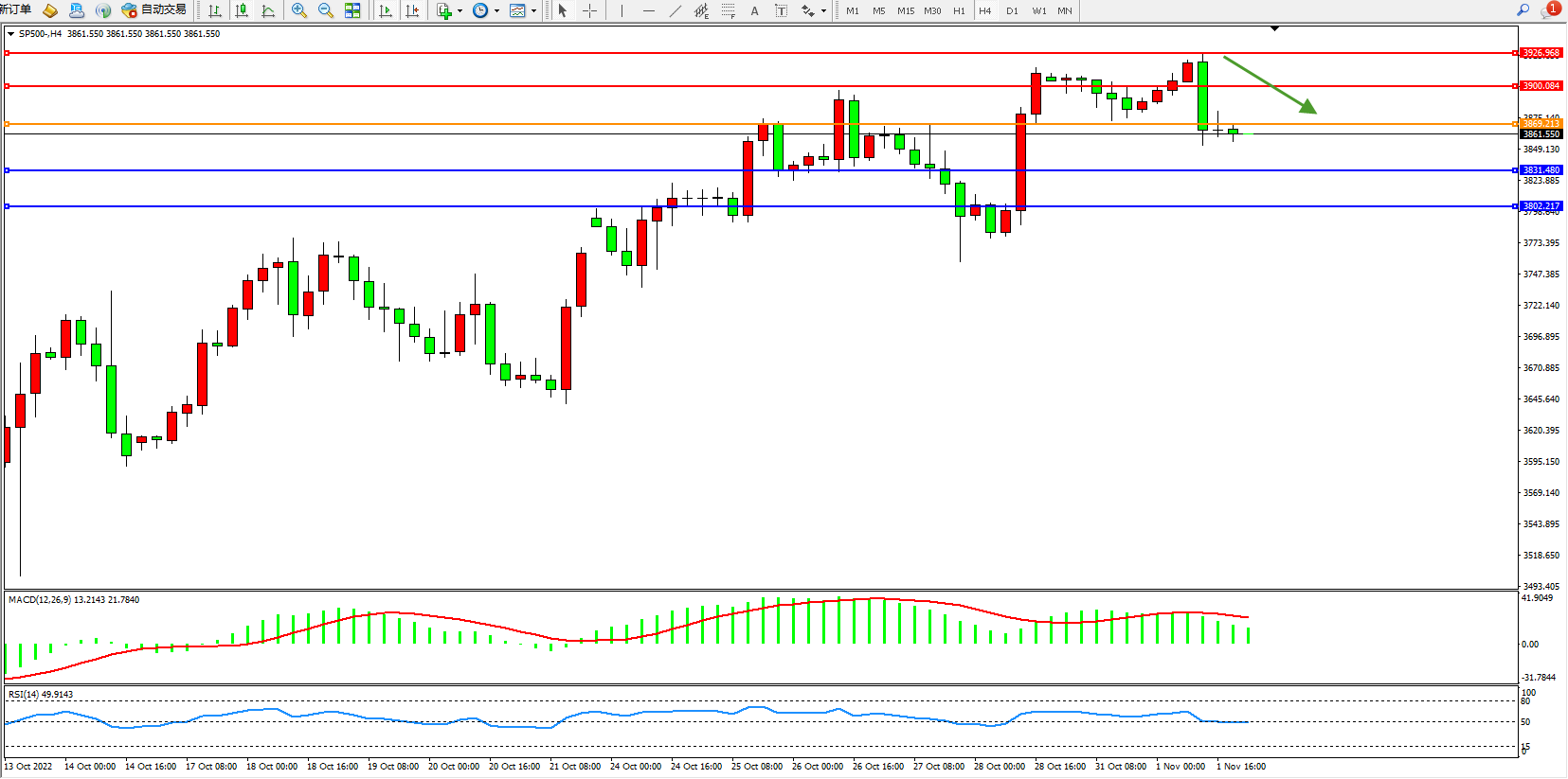 标普500指数11月1日(周二)收盘下跌16.77点,跌幅0.43%,报3855.21点;市场预计美联储将从12月份开始缓和现行政策立场,美元和美国国债收益率回落。尽管美联储还远没到结束加息的时候,但鉴于货币政策调整对经济的影响存在滞后性,决策层本周或不得不讨论何时放慢加息脚步。