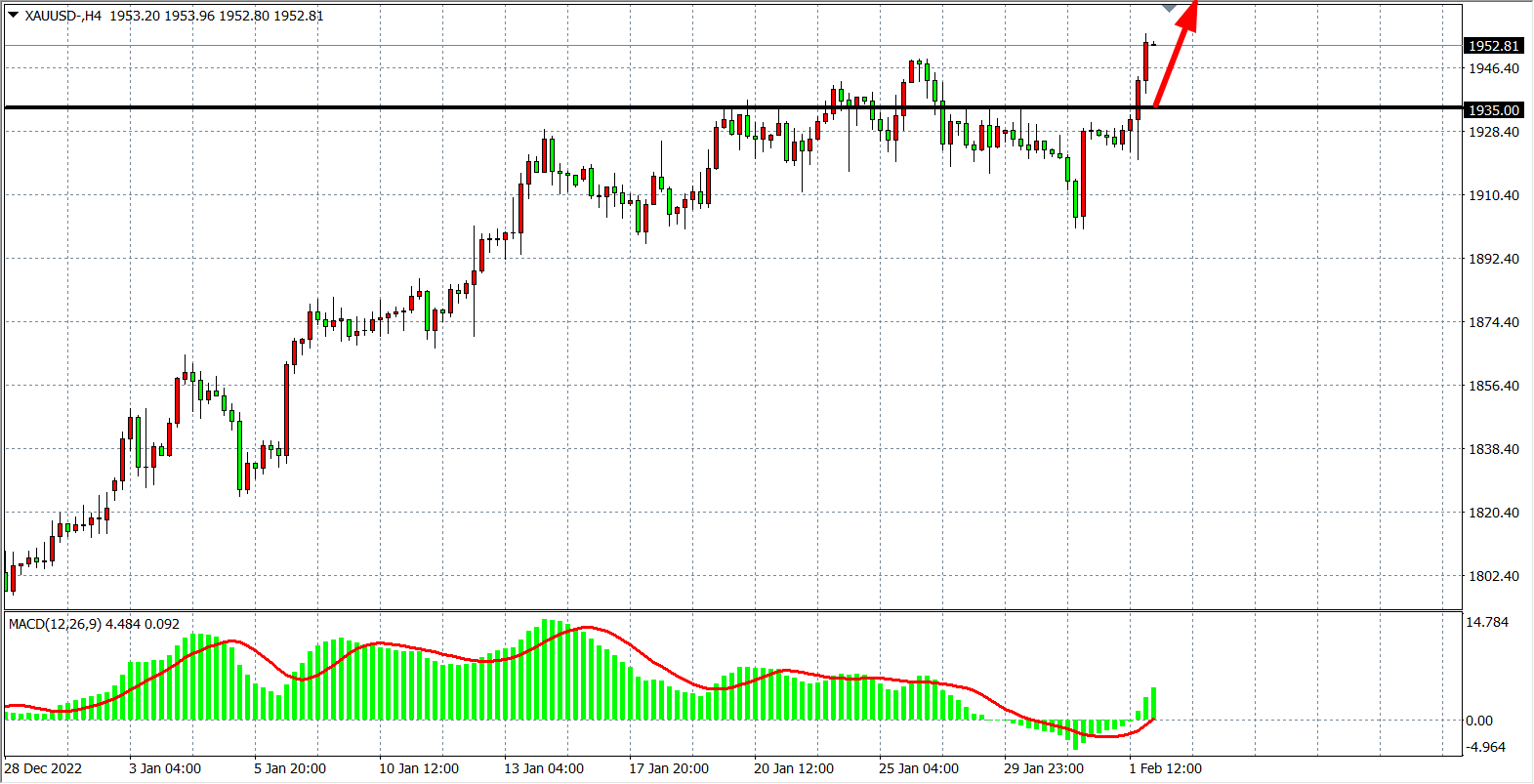 现货黄金XAUUSD 4小时图