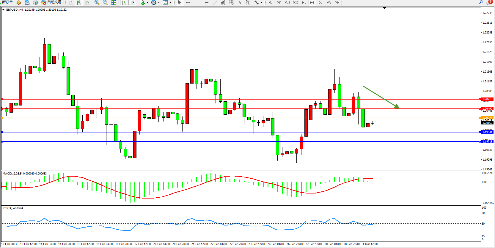 英镑美元GBPUSD ——4小时K线图显示: