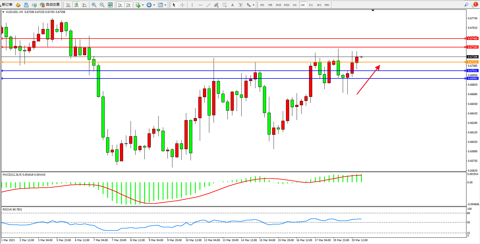 阻力位:0.67340 0.67460