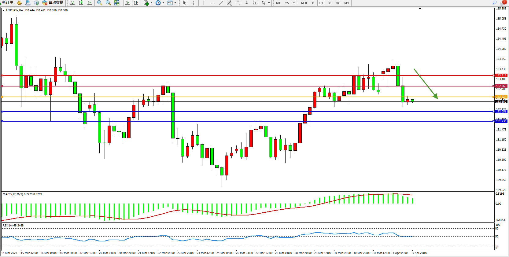 美元兑日圆维持132.380附近震荡,日本央行将在4月27日至28日召开的下一次会议上,仔细研究这些关键数据,以得出新的季度增长和通胀估计。即将上任的日本央行行长植田和男将首次主持会议。