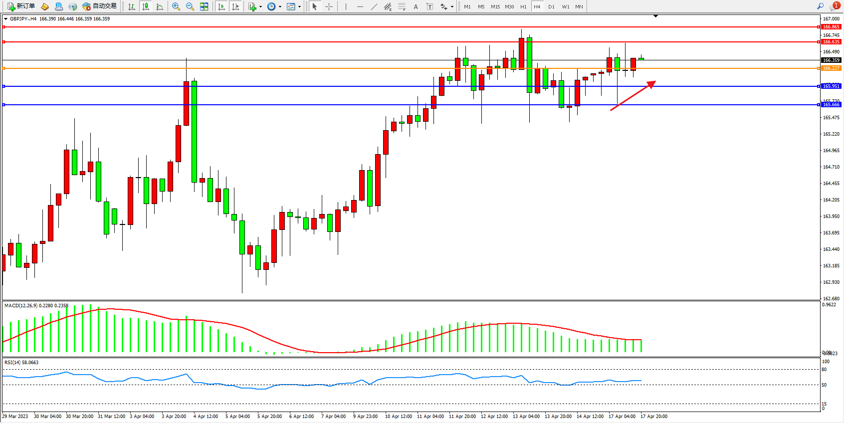 交易策略:166.227上方看涨,目标166.635  166.865