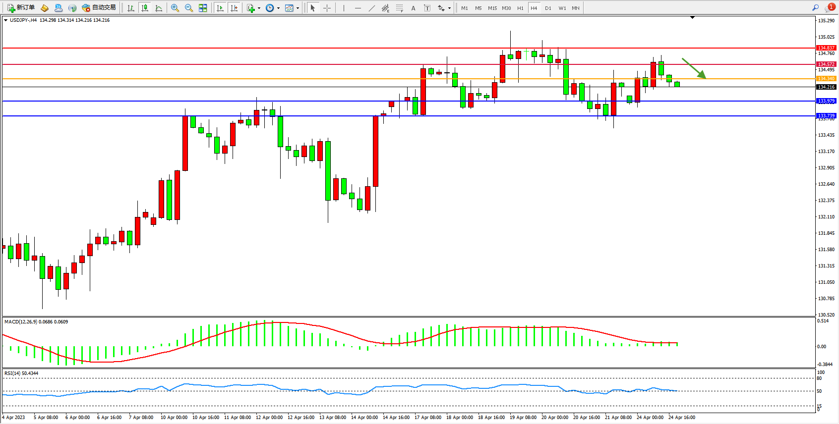 阻力位:134.572  134.837