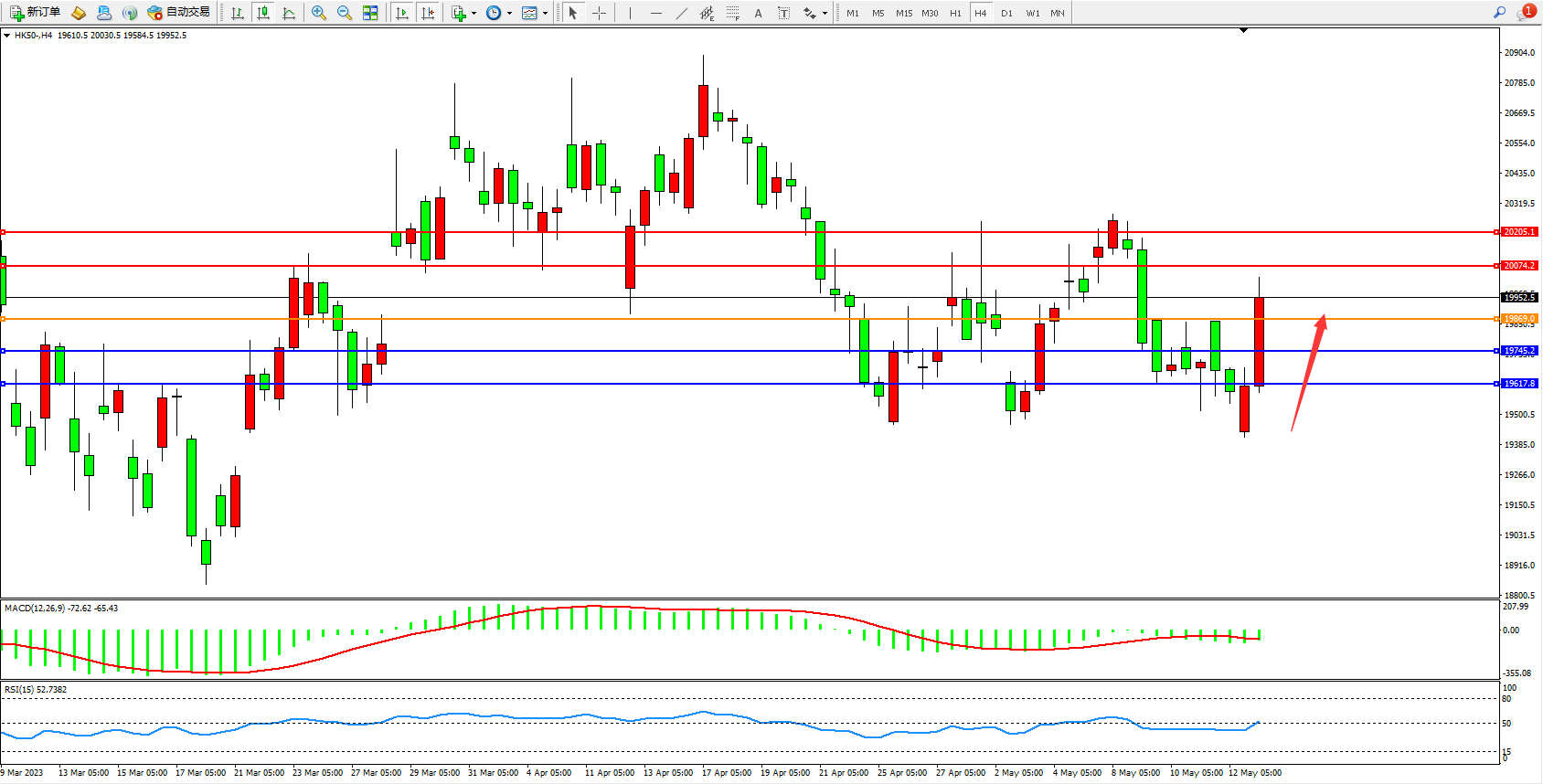 香港恒生指数5月15日(周一)收盘上涨343.89点,涨幅1.75%,报19971.13点;港股午后在大金融、中特估概念股的拉升下,三大指数快速拉升上涨,恒指最终收涨1.75%,国指、恒生科技指数分别涨1.75%和1.33%,三者盘中一度涨超2%。型科技股午后拉升,市场预期Q1经调整净利同比升27%,连续调整的大型金融等现大反攻行情,以内险板块表现最佳,中字头股近乎全部拉升上涨,中国中铁、中国中冶皆上涨;南下资金全日净流入21.8亿港元,大市成交额为1016亿港元。