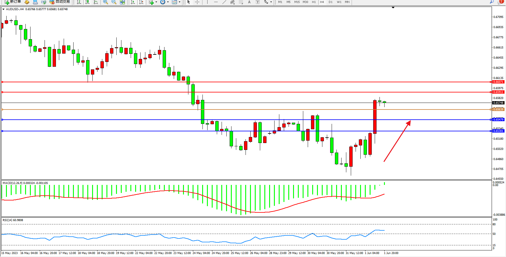 交易策略:0.65639上方看涨,目标0.65911 0.66071