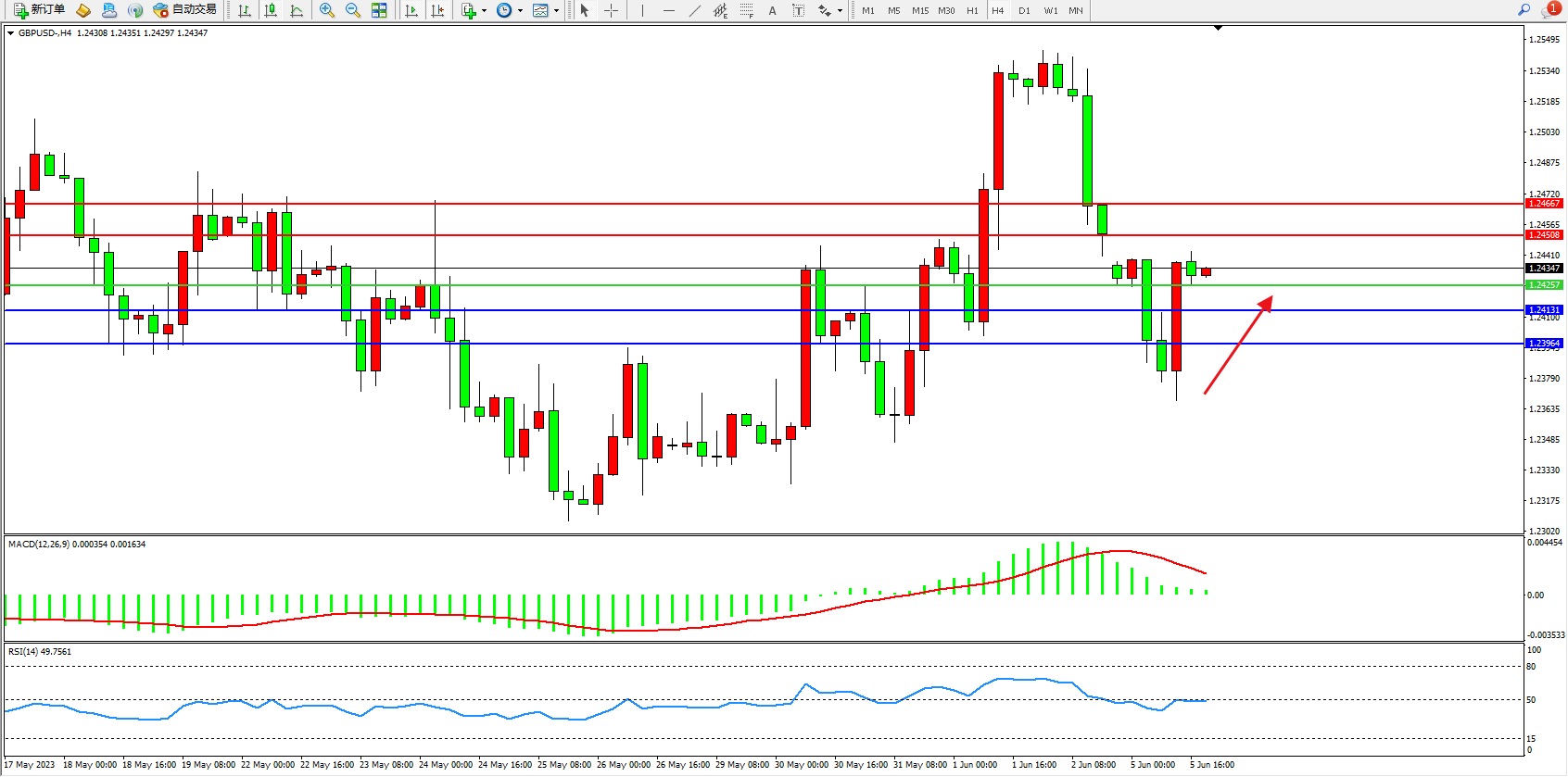 交易策略:1.24257上方看涨,目标1.24508 1.24667