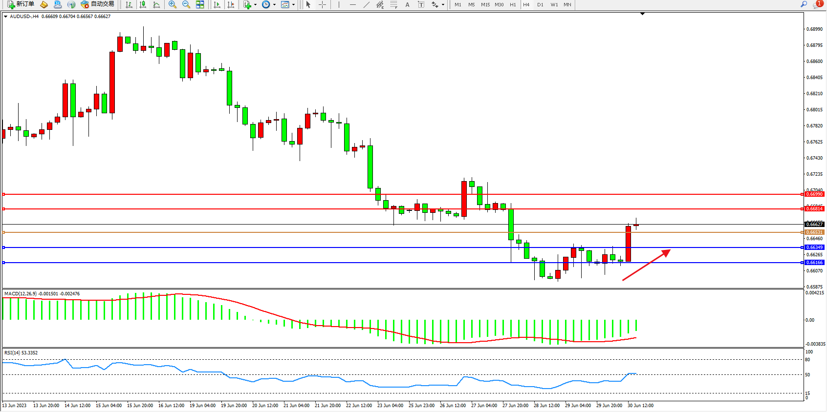 阻力位:0.66814 0.66990